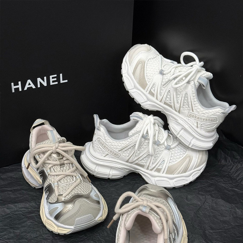 欧货真皮网面老爹鞋女2026年春季新款厚底卡皮巴拉休闲运动鞋圆头