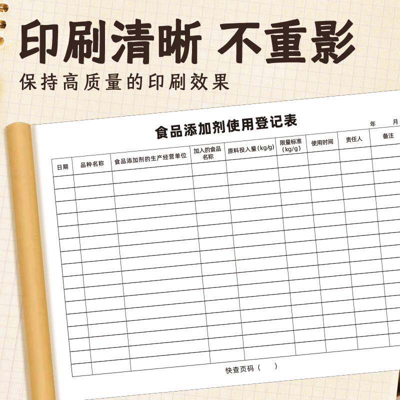 食品添加剂使用登记表色素登记表餐饮台账单位采购登记本可定制
