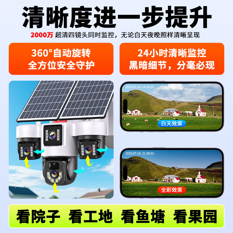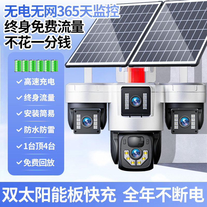 太阳能监控摄像360度无死角室外手机远程家用超清夜视户外摄影头