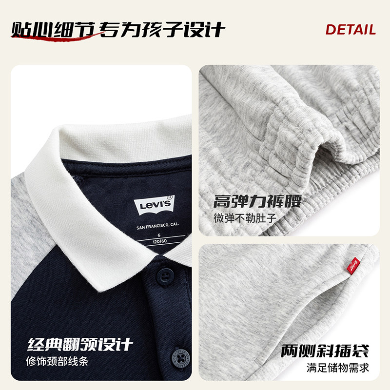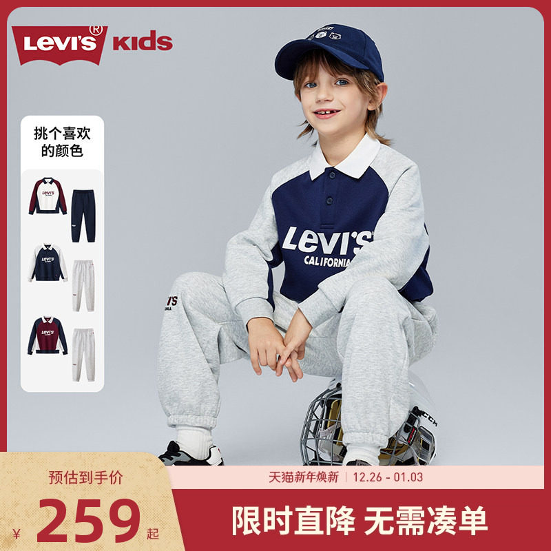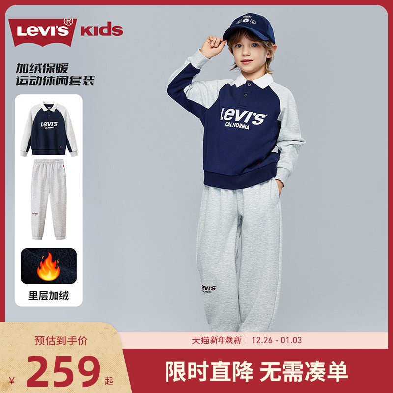 【加绒】李维斯儿童套装男童2025冬季新款童装运动卫衣长裤子2件