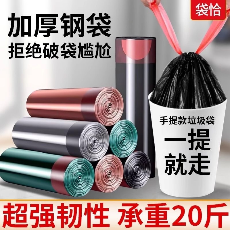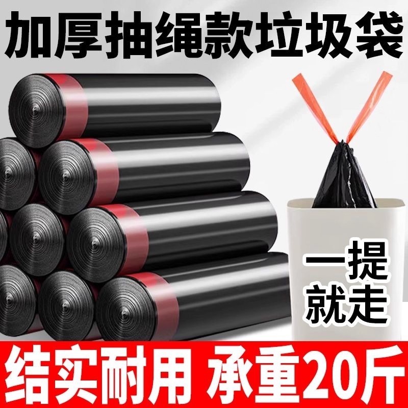 手提式抽绳垃圾袋家用加厚实惠批发装厨房黑色大号垃圾袋