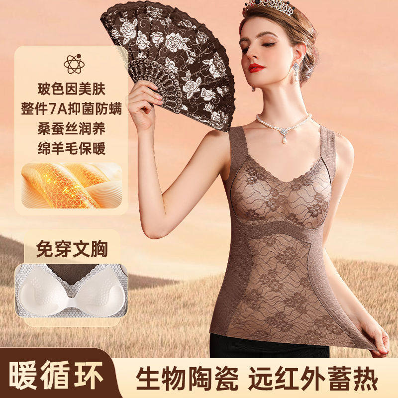 草本初色山茶花保暖背心女带胸垫2025秋冬新款内搭可外穿肌底衣