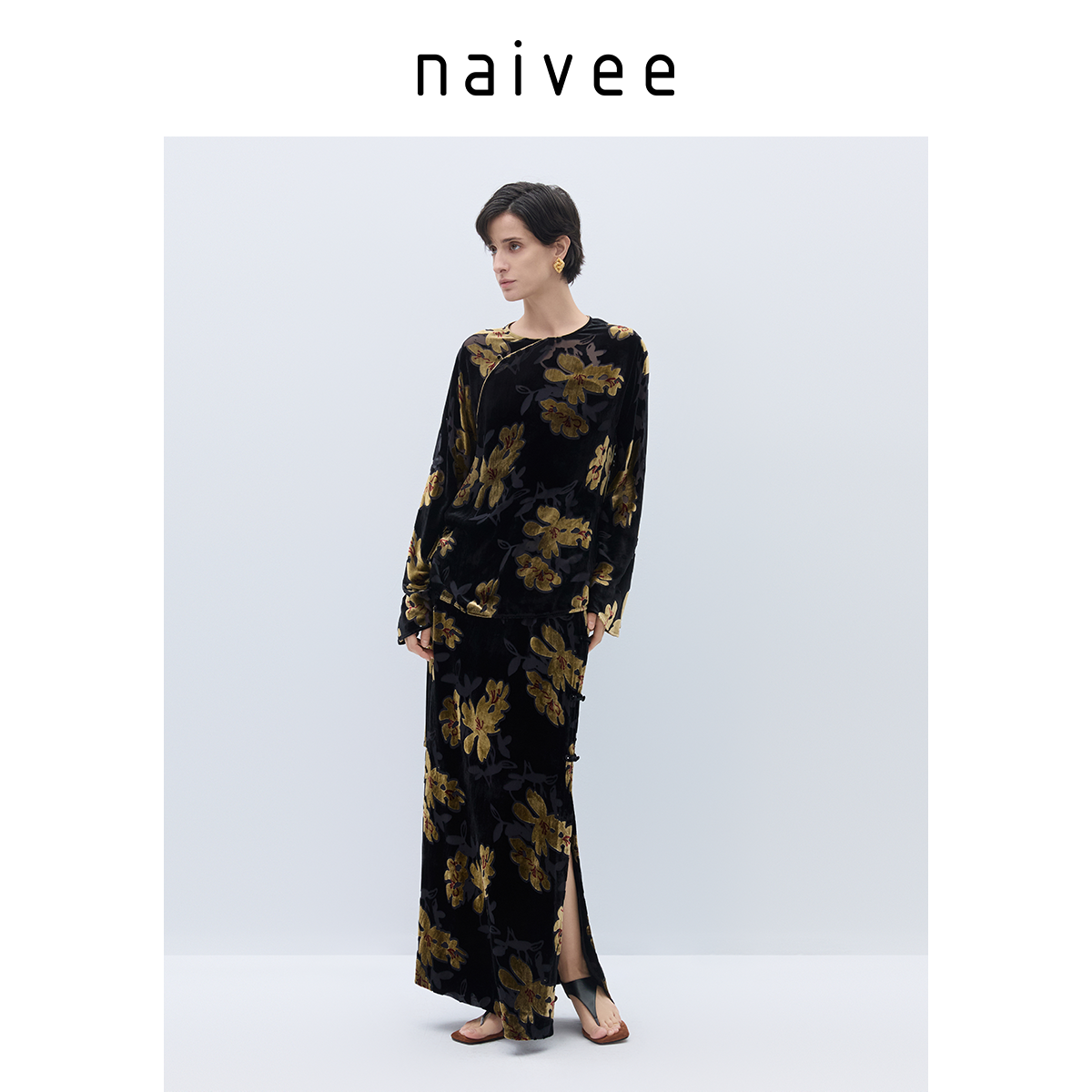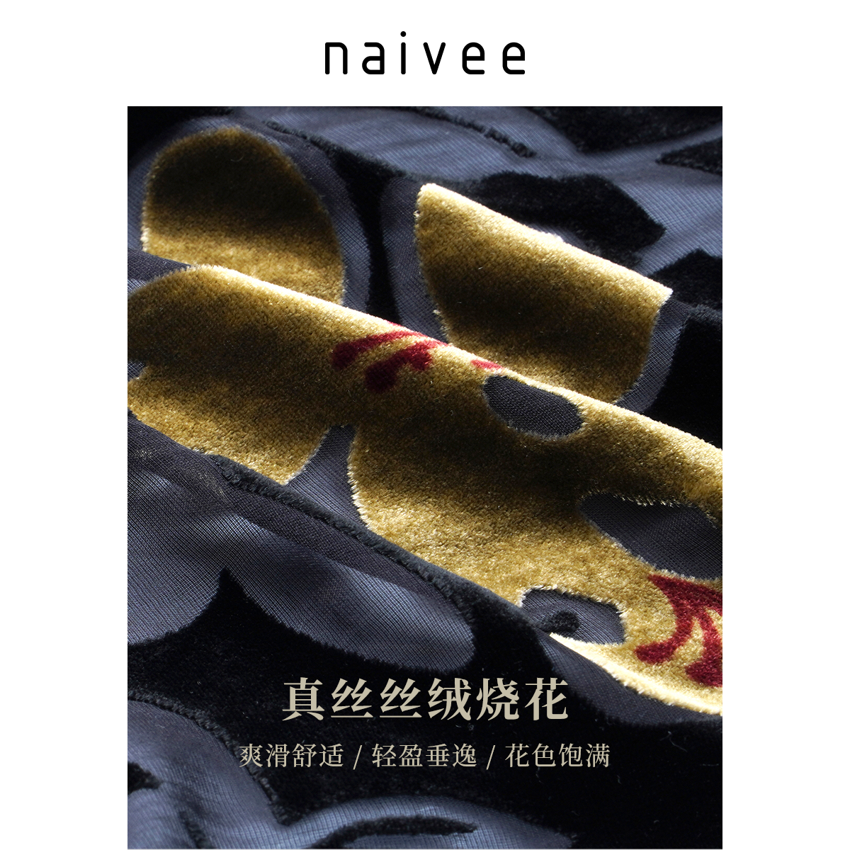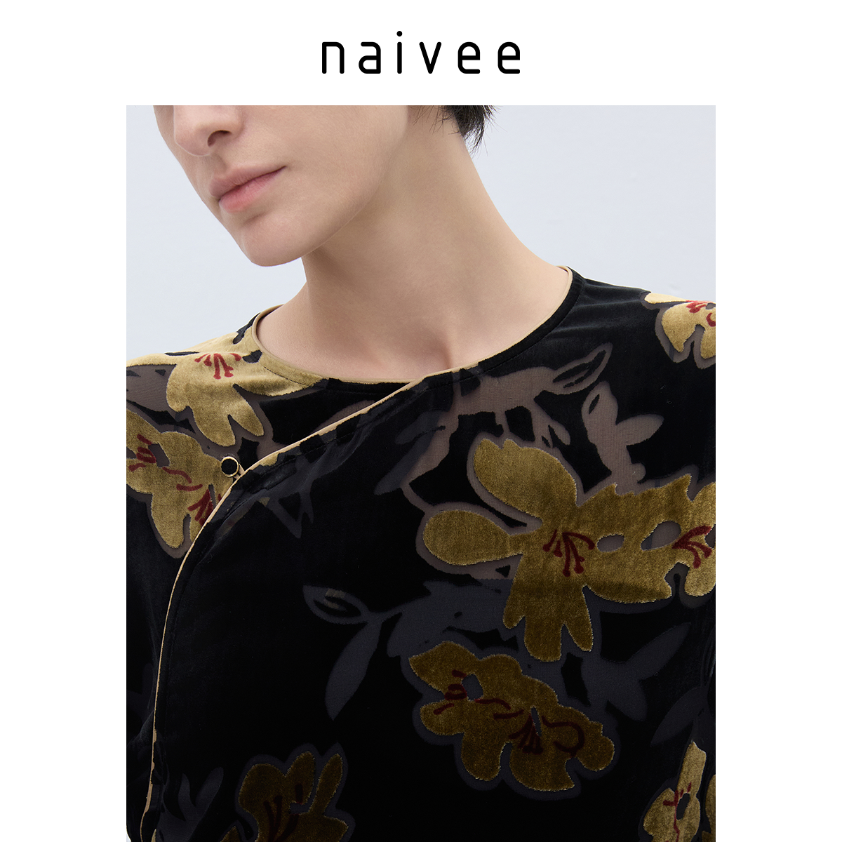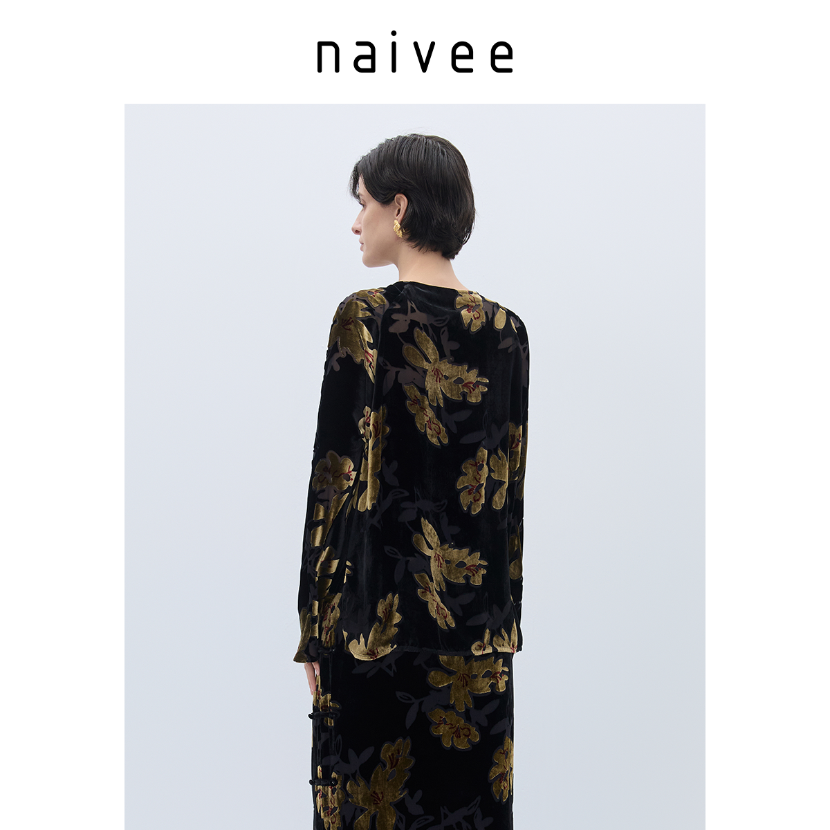naivee纳薇2025秋冬新中式真丝衬衫丝绒烧花斜襟长袖上衣女老钱风
