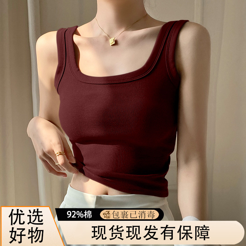 半练纽扣带胸垫夏季背心白色吊带女外穿内搭打底上衣免穿内衣