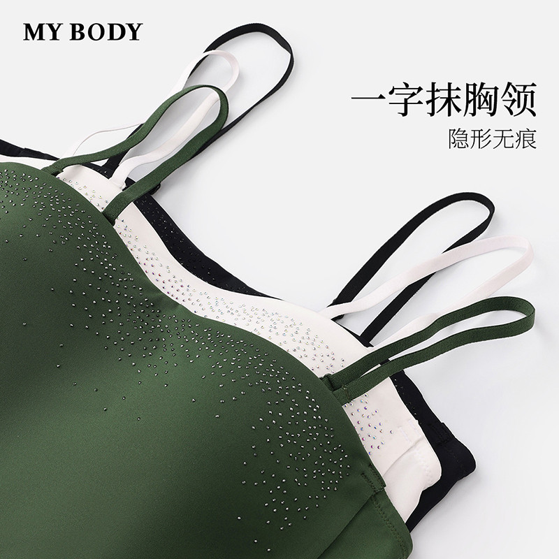 商场同款MYBODY吊带背心女带胸垫可外穿性感闪钻无痕内搭打底胸衣
