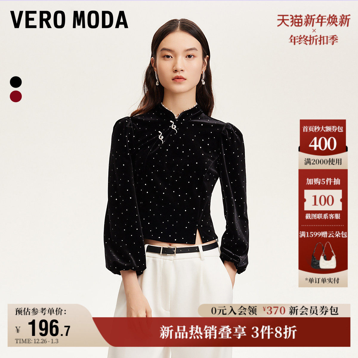 Vero Moda奥莱上衣女秋冬新款新中式闪粉钉珠装饰丝绒复古衬衫