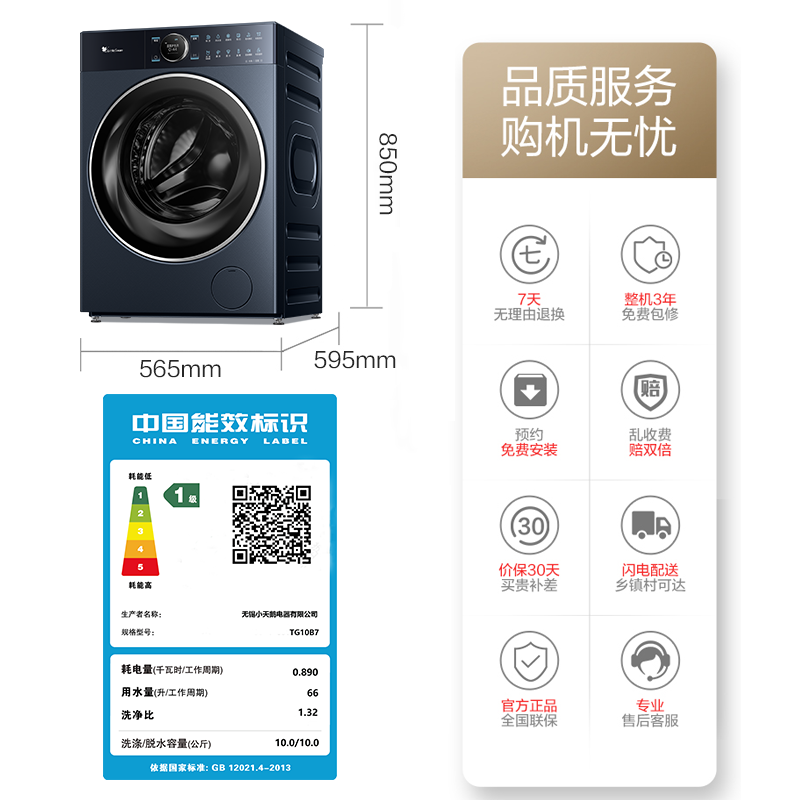 【本色2026尊享版】小天鹅蓝氧10KG家用全自动变频滚筒洗衣机10B7