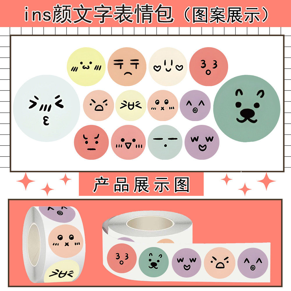 1500贴ins颜文字表情包贴纸笑脸情绪图案手机水杯行李箱防水装饰