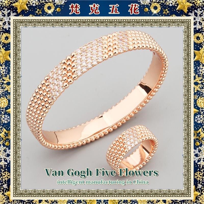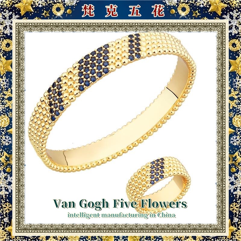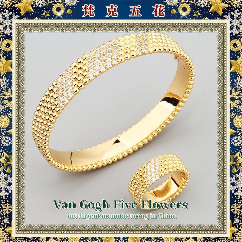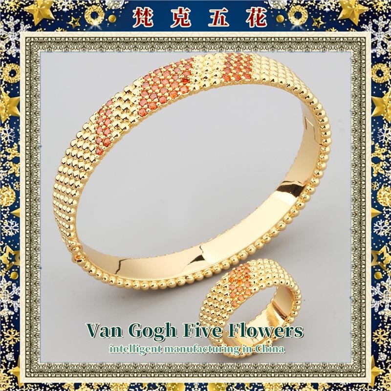 梵克五花不褪色万花筒排钻手镯戒指新款真V金材质欧美四叶草手环