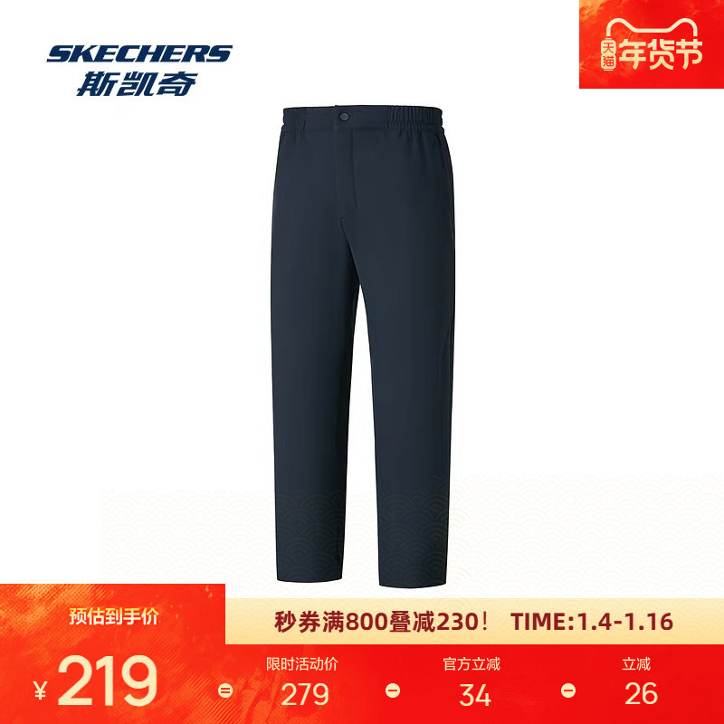 斯凯奇男款长裤2026年春季新品舒适梭织束脚直筒休闲百搭运动裤