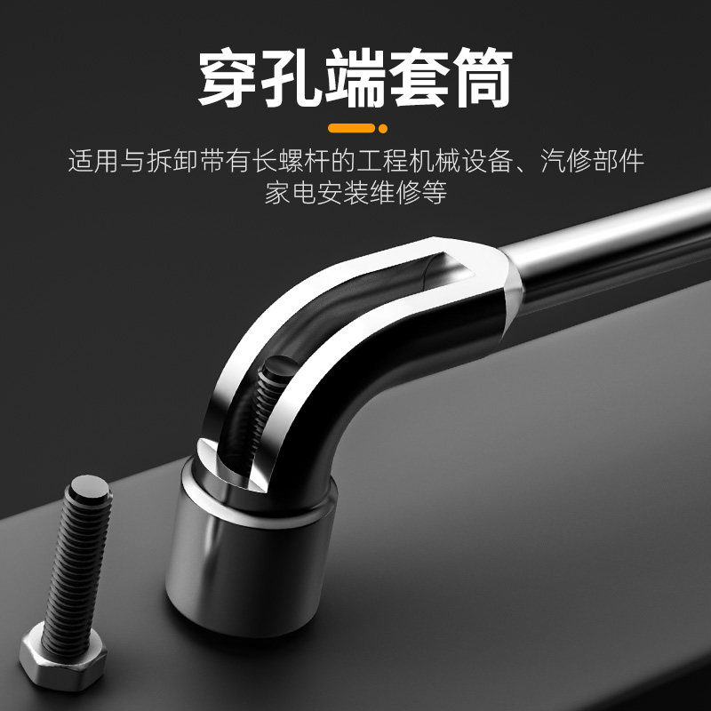 L型套筒扳手7字型烟斗型弯头穿孔扳手汽修工具双头外六角套筒17mm