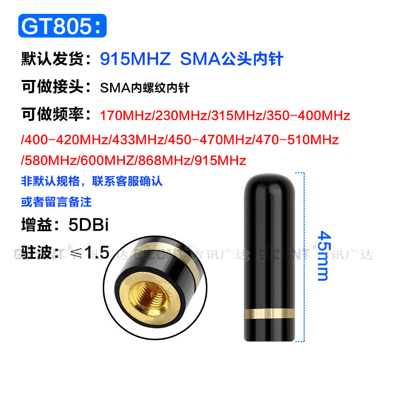 LORA网关NB物联网模块433MHZ数传电台短小天线450-470-510/840/868/915/1.2G/1.4G/2.4G/5.8G全向高增益SMA头