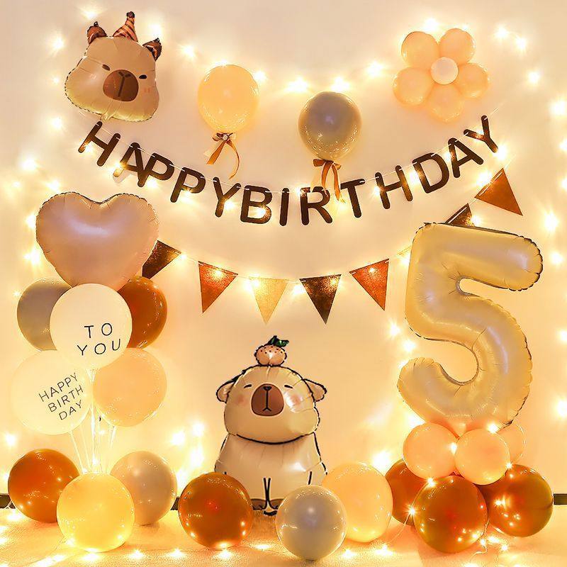 卡皮巴拉主题儿童生日气球装饰女孩周岁派对背景墙氛围仪式感棕色