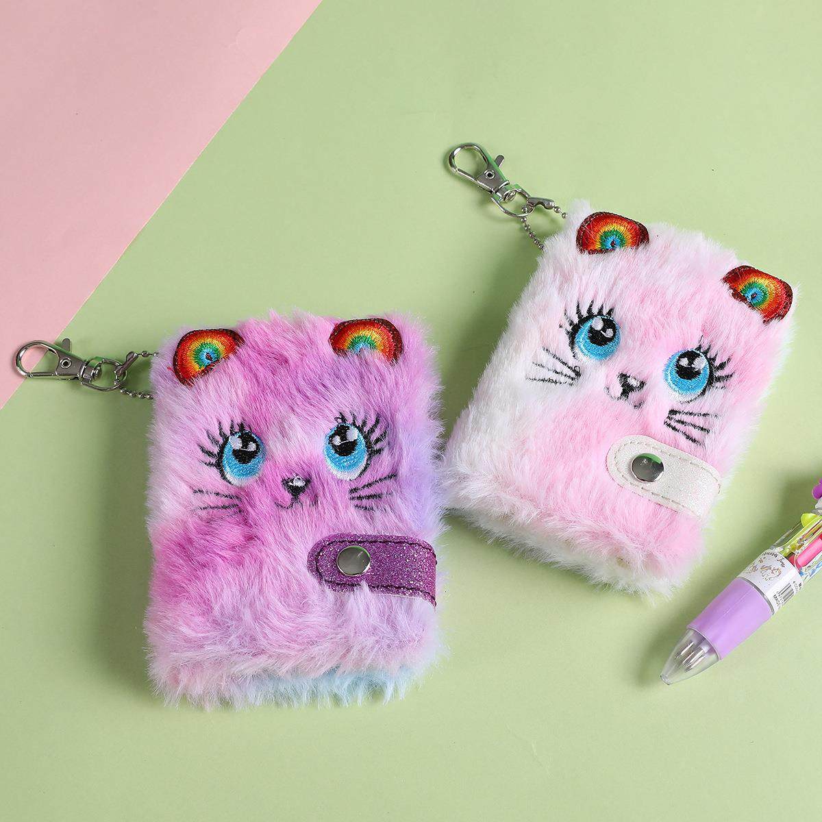 2025新款卡通毛绒手帐本可爱猫咪儿童书写本书包挂件节日礼物本子