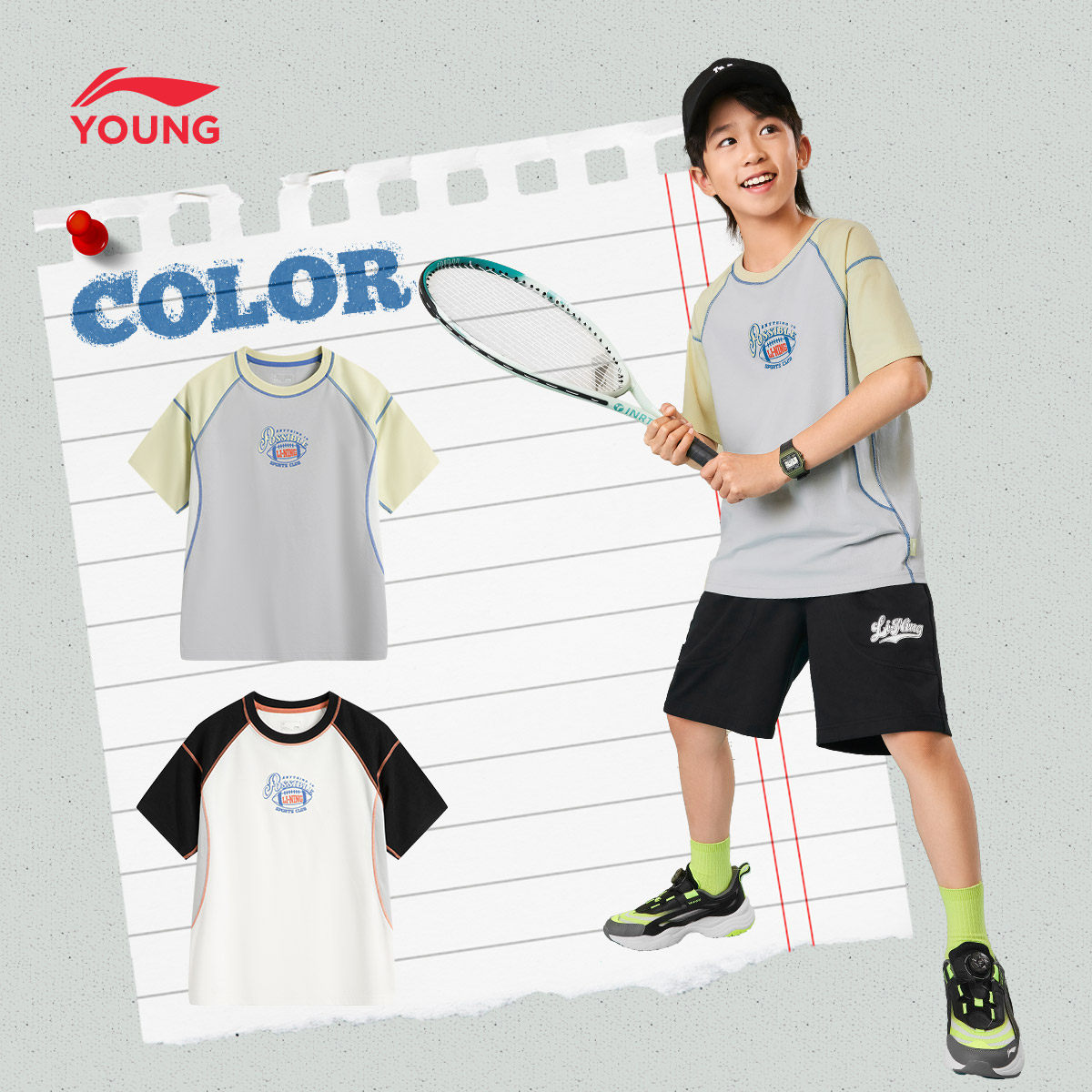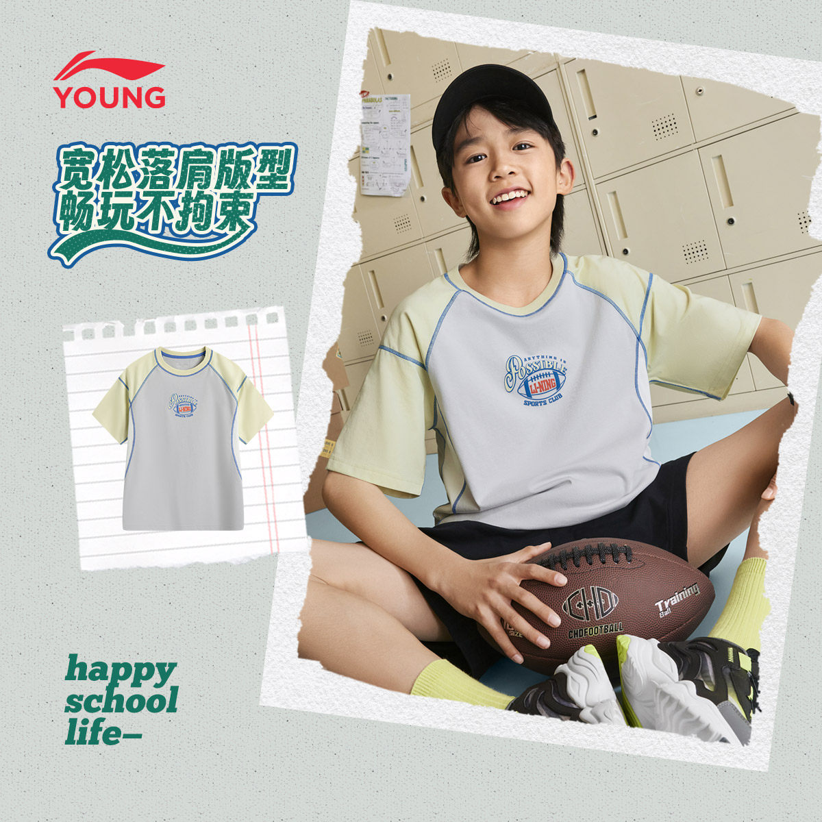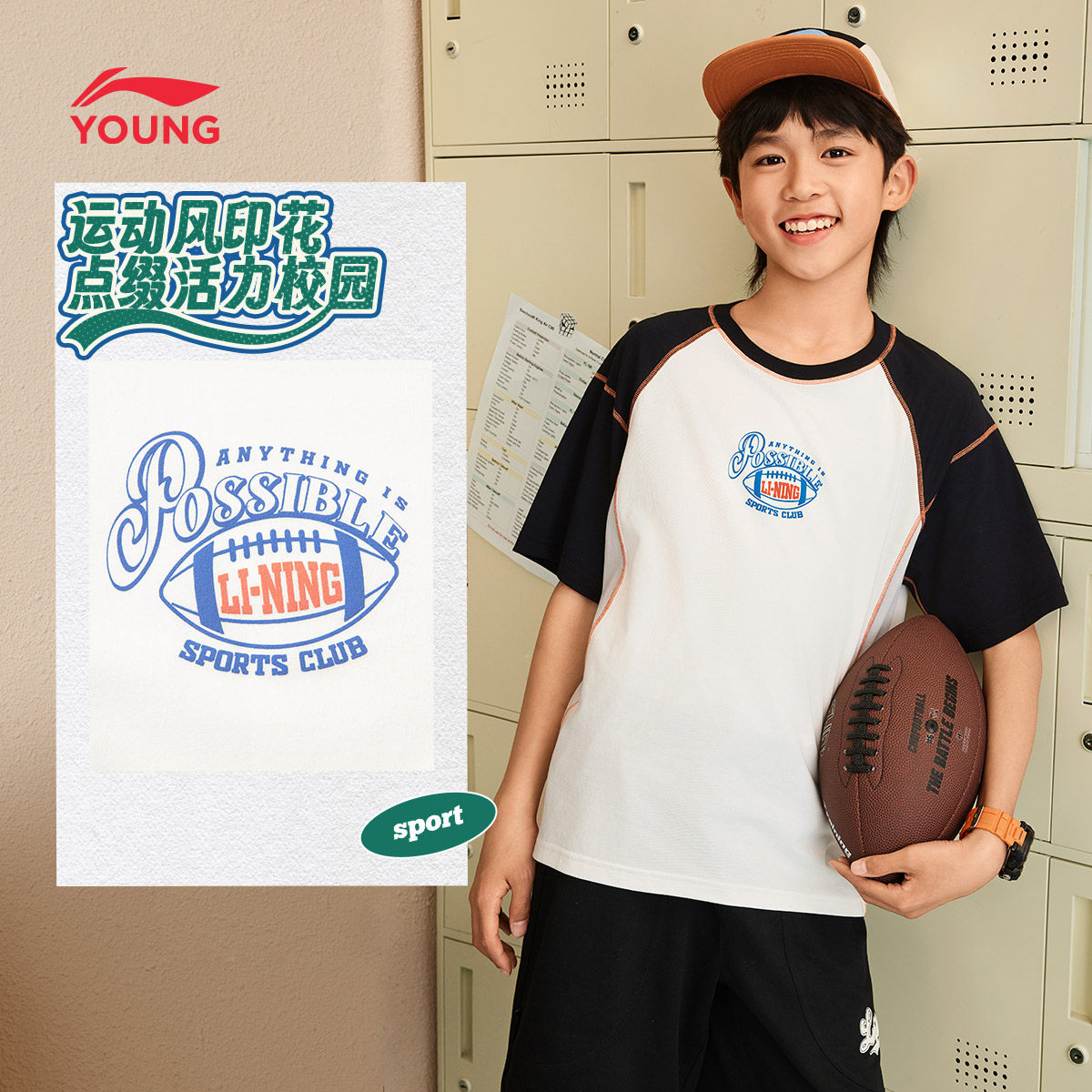 李宁童装短袖T恤男女小大童新款运动生活系列春夏季宽松休闲上衣