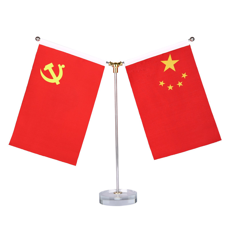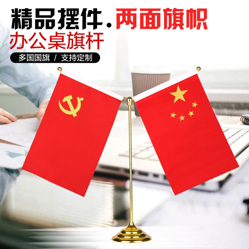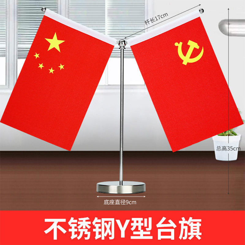 办公室国旗党旗摆件桌旗Y型 高档会议室不锈钢桌面旗杆旗架旗座