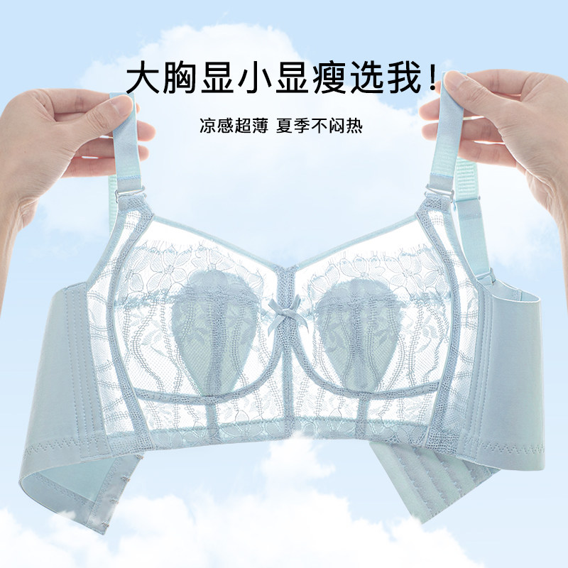 【洞洞杯】蝴蝶日记内衣女薄款蕾丝大胸显小聚拢收副乳调整型文胸