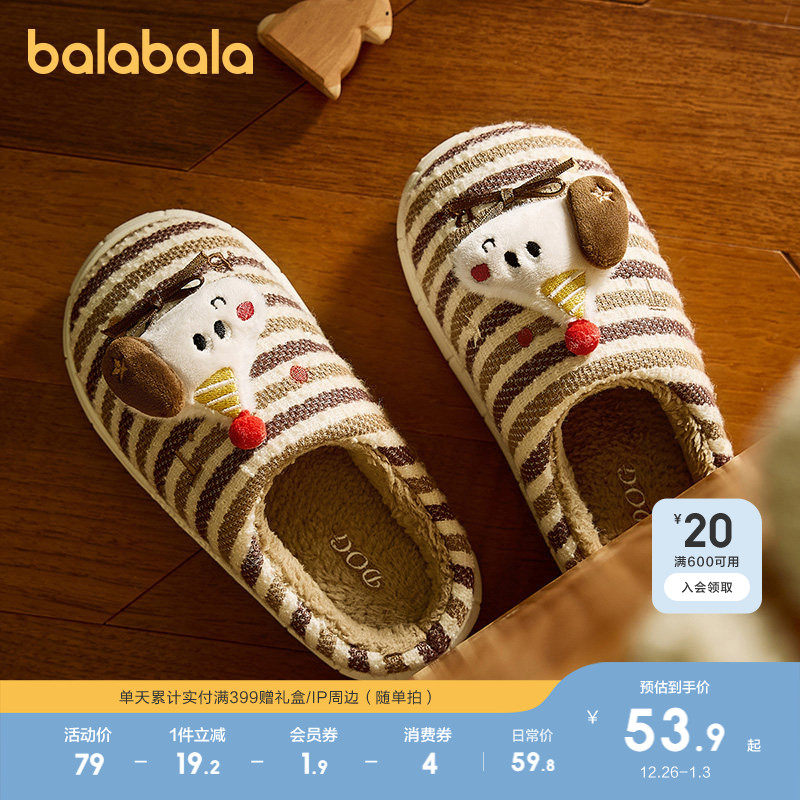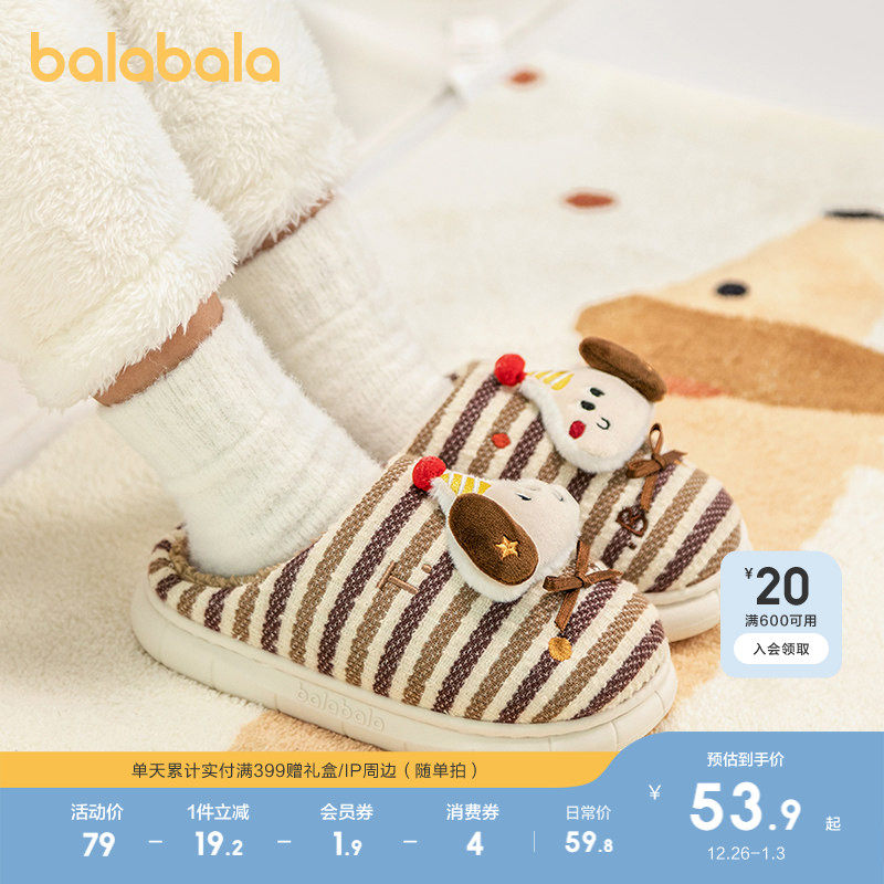 巴拉巴拉儿童棉拖鞋男女童宝宝2025室内鞋子秋冬棉鞋条纹卡通动物