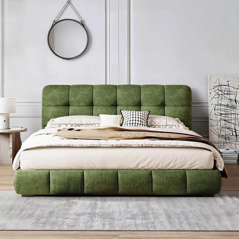 网红泡芙床布艺床意式双人1.8米主卧大床布床现代简约高箱储物床