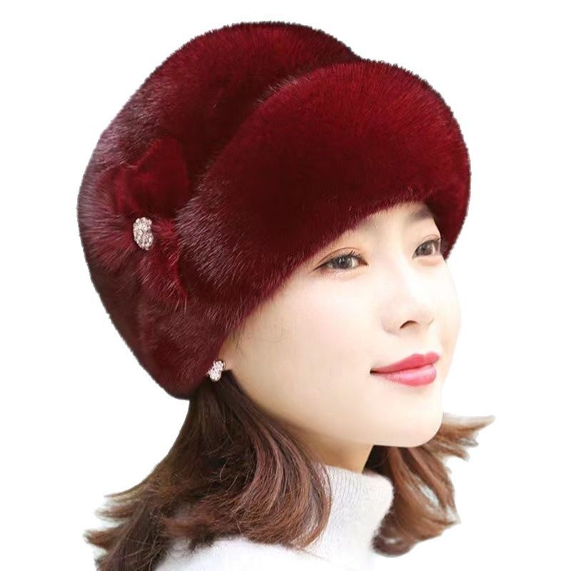 新款皮草帽女冬天仿水貂毛礼帽时尚皮保暖帽中老年皮草包头帽潮流