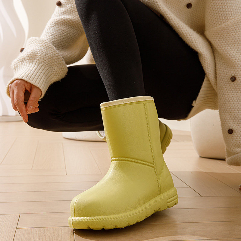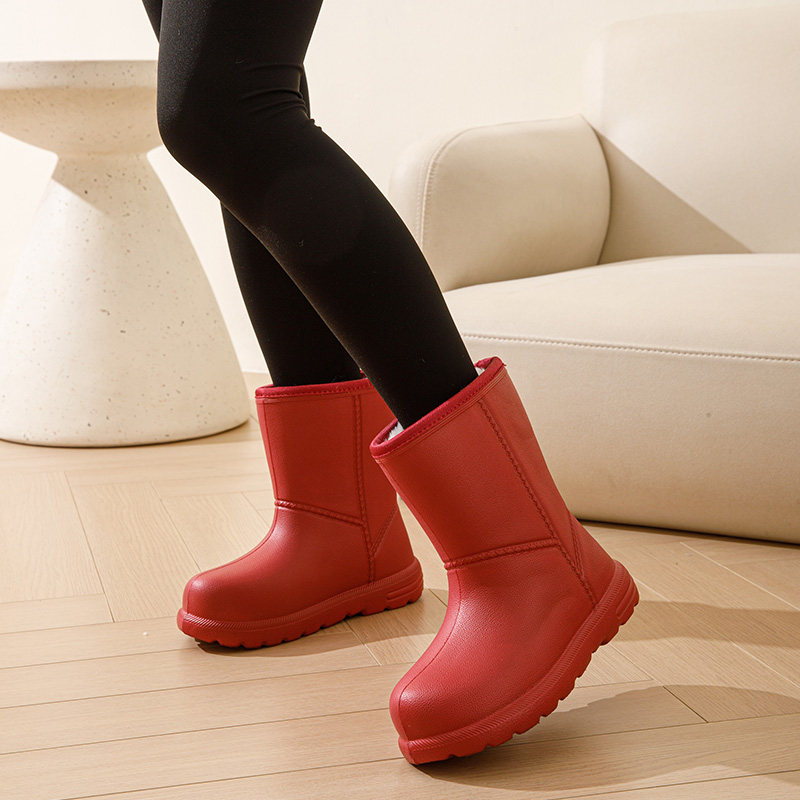 加绒雪地靴女款防水防滑2025款水鞋加棉雨鞋冬季保暖棉鞋红色中筒
