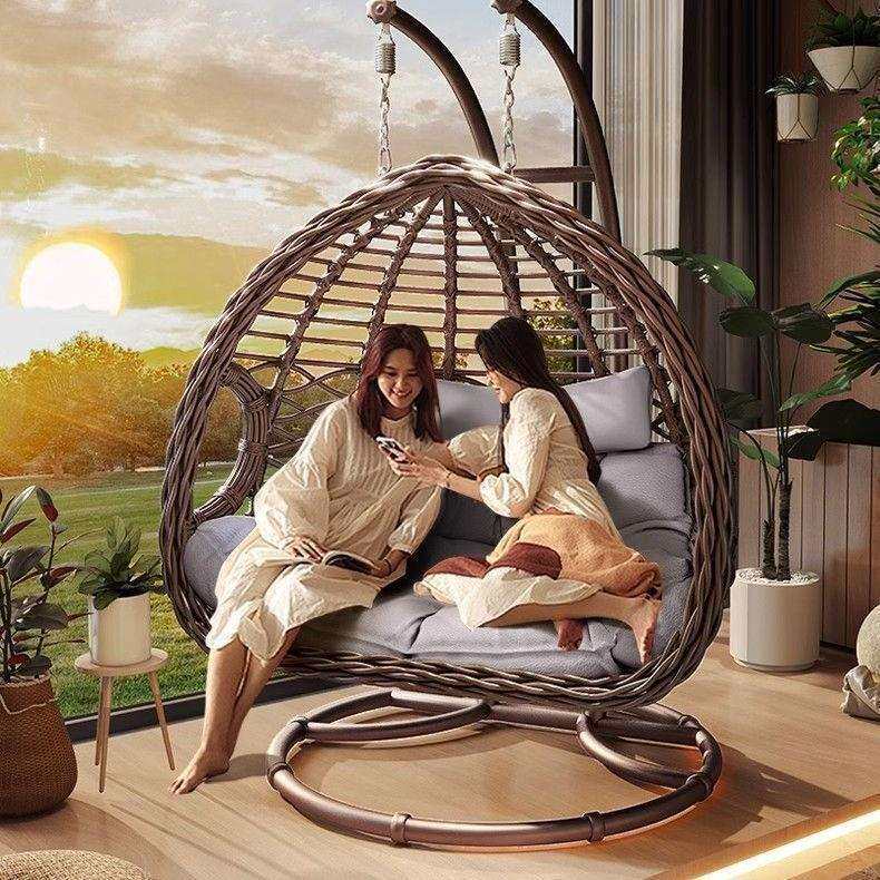 户外吊篮椅秋千庭院双人吊椅家用阳台室内网红鸟巢吊床藤椅摇摇椅