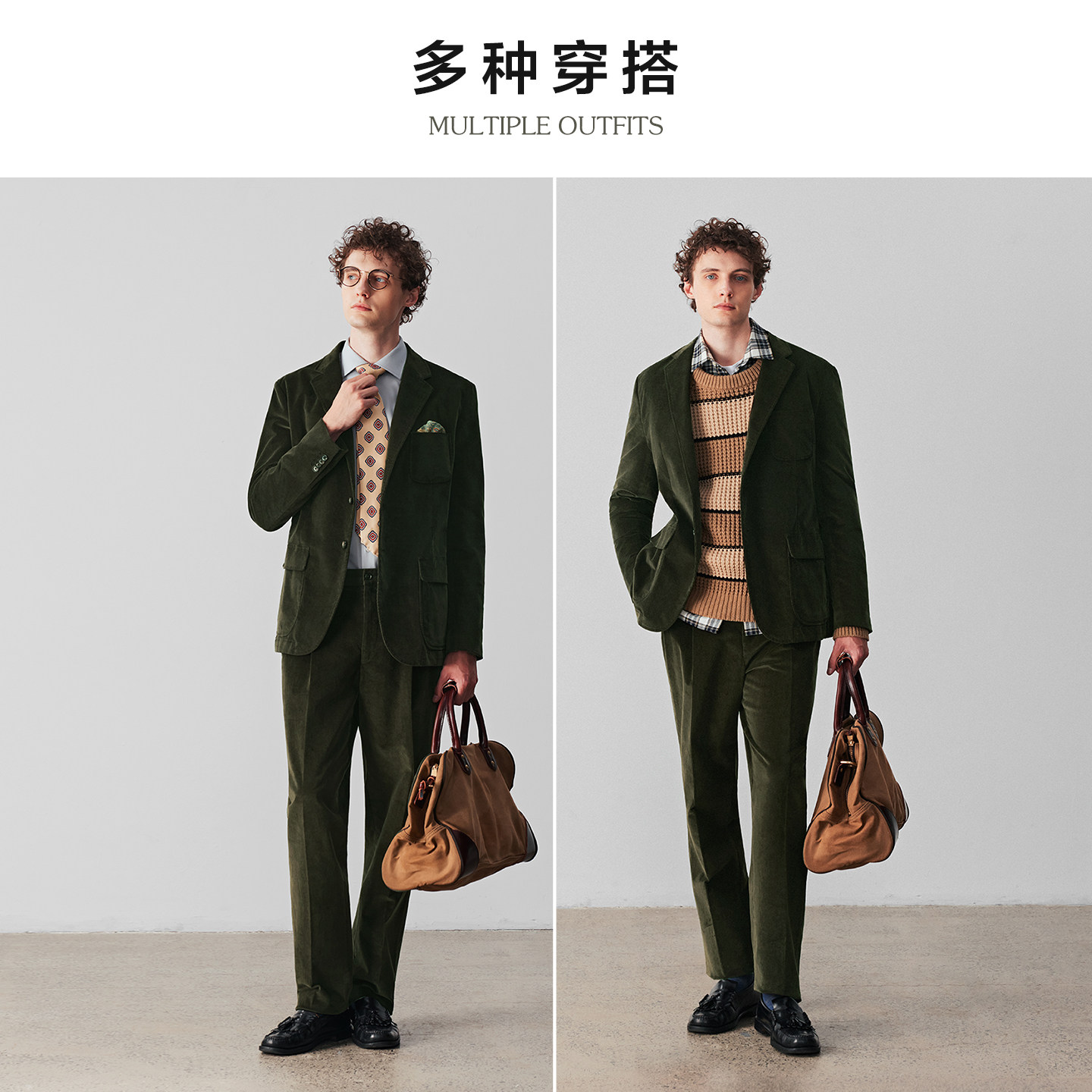柏品细坑条灯芯绒西服套装男25冬季做旧水洗复古休闲高腰正装绅装