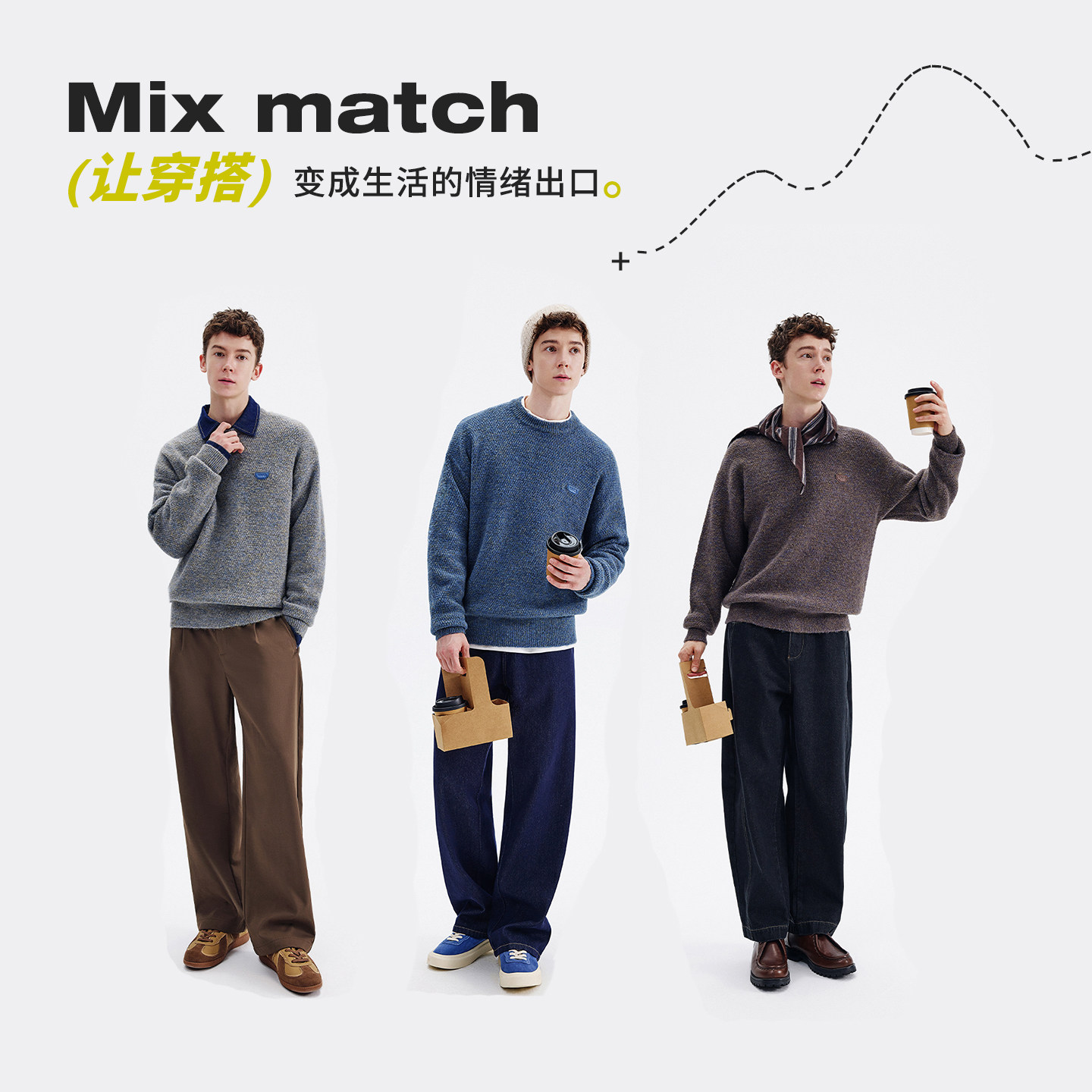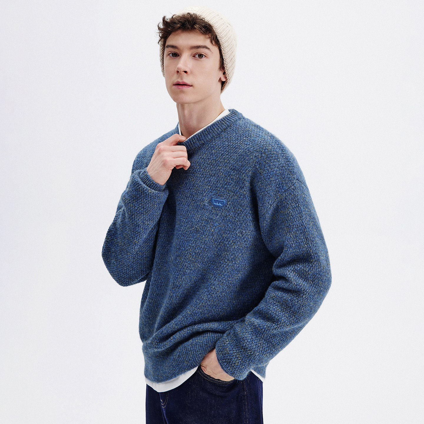 森马毛衫男冬季满版提花针织衫撞色毛衣宽松套头衫百搭提花潮-TK