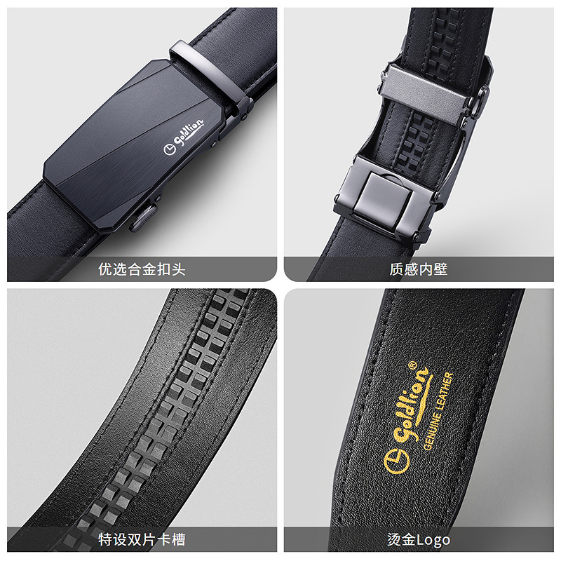 金利来皮带男士新款磨砂自动扣防指纹头层牛皮光面商务腰带