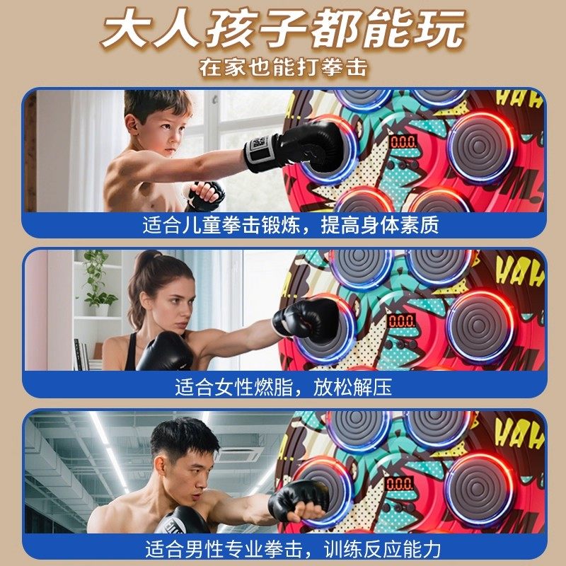 网红爆款智能音效拳击墙靶家用儿童反应训练亲子互动玩具散打器材