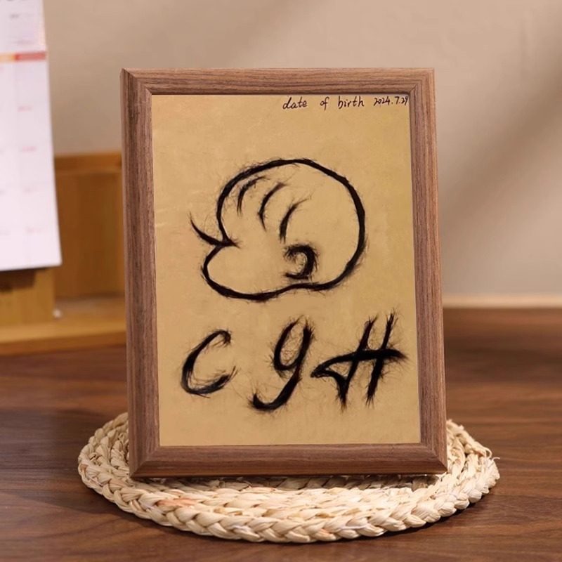 胎毛纪念品自制相框diy新生儿宝宝胎发创意相册实木装裱毕业方形