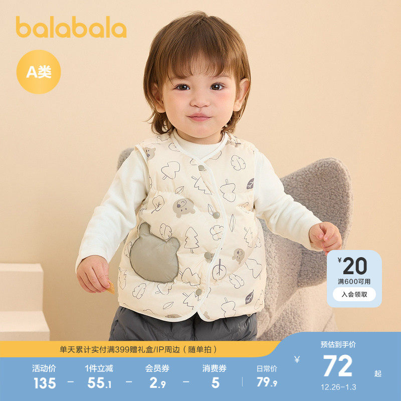 巴拉巴拉balaOne儿童羽绒马甲女童男童外套上衣新款童装2025秋冬