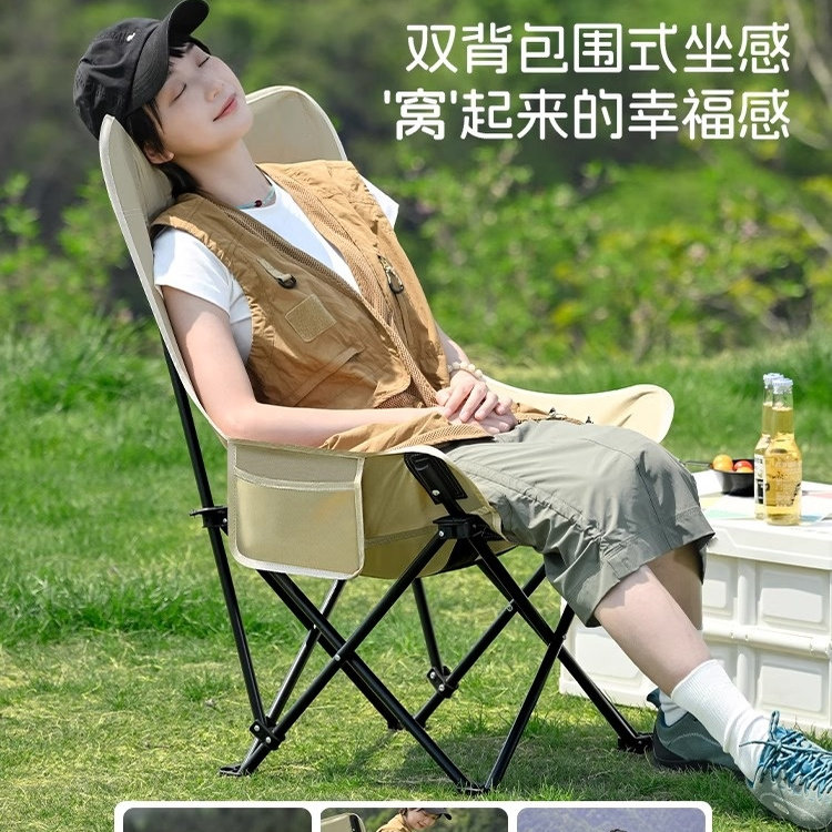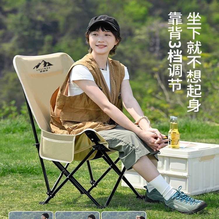 户外折叠椅加高靠背可折叠月亮椅便携午休办公室露营等沙发懒人椅