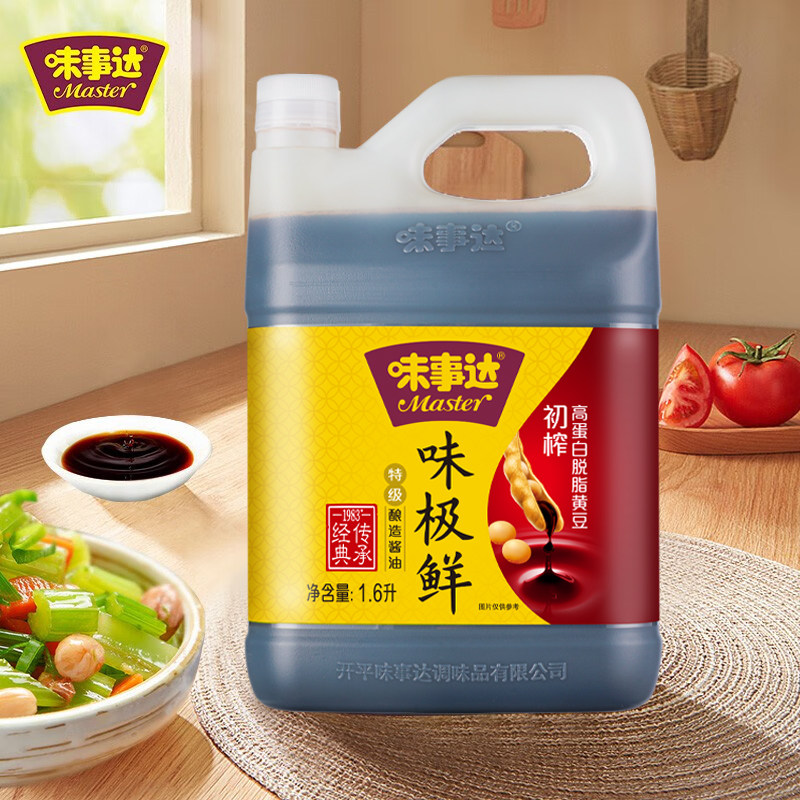 味事达味极鲜1.6L酱油家用蘸料调味料头道酿造整箱黄豆酱食用鲜味