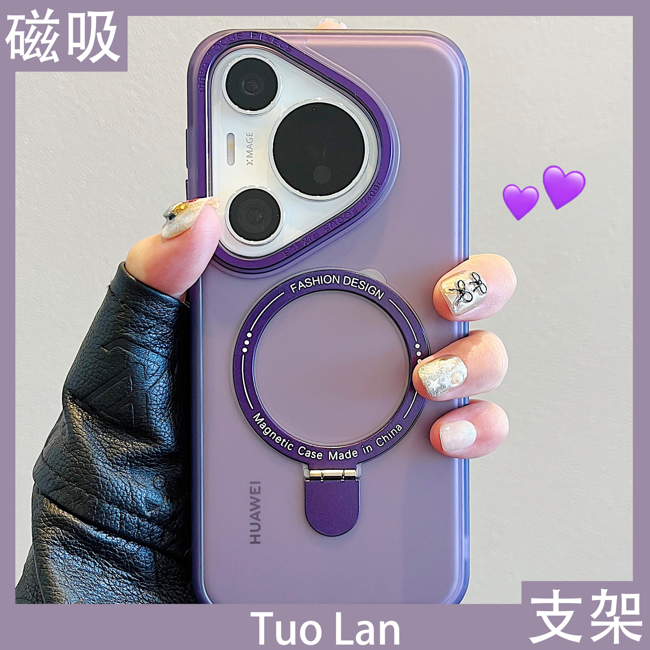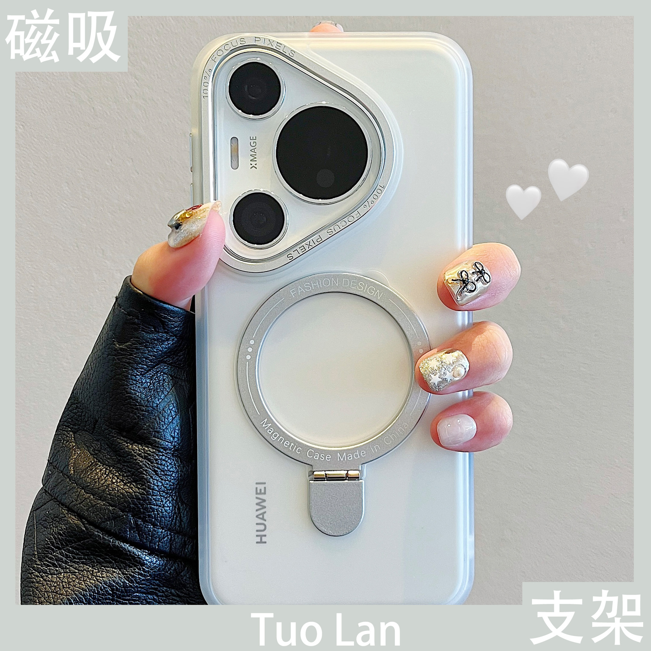 拓岚 适用华为pura70pro+手机壳新款Pura70ultra电镀钢码镜头框磁吸支架p60磨砂p50pro全包mate60/50/40/30女