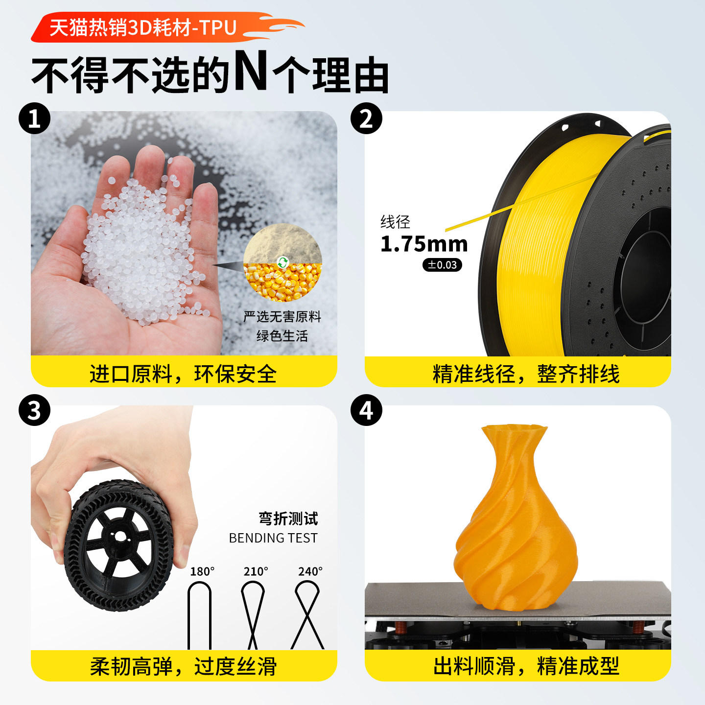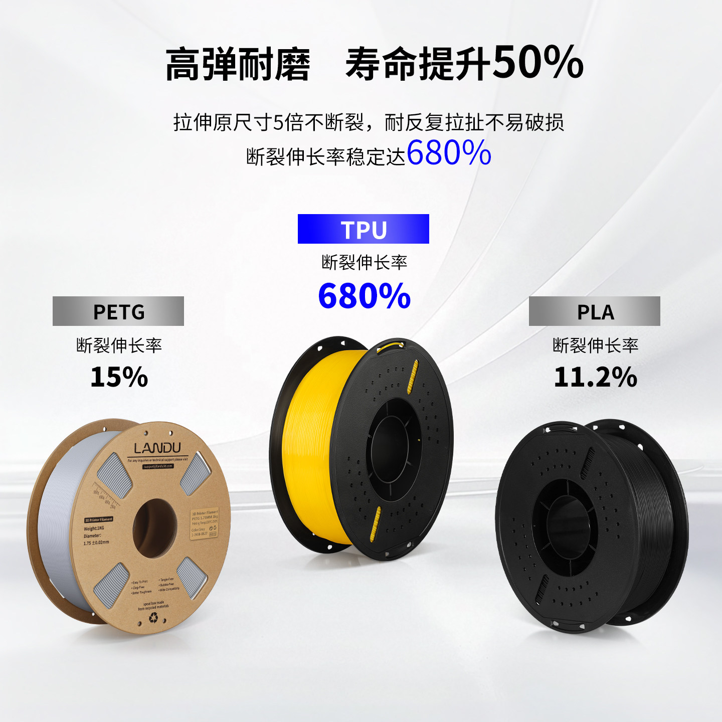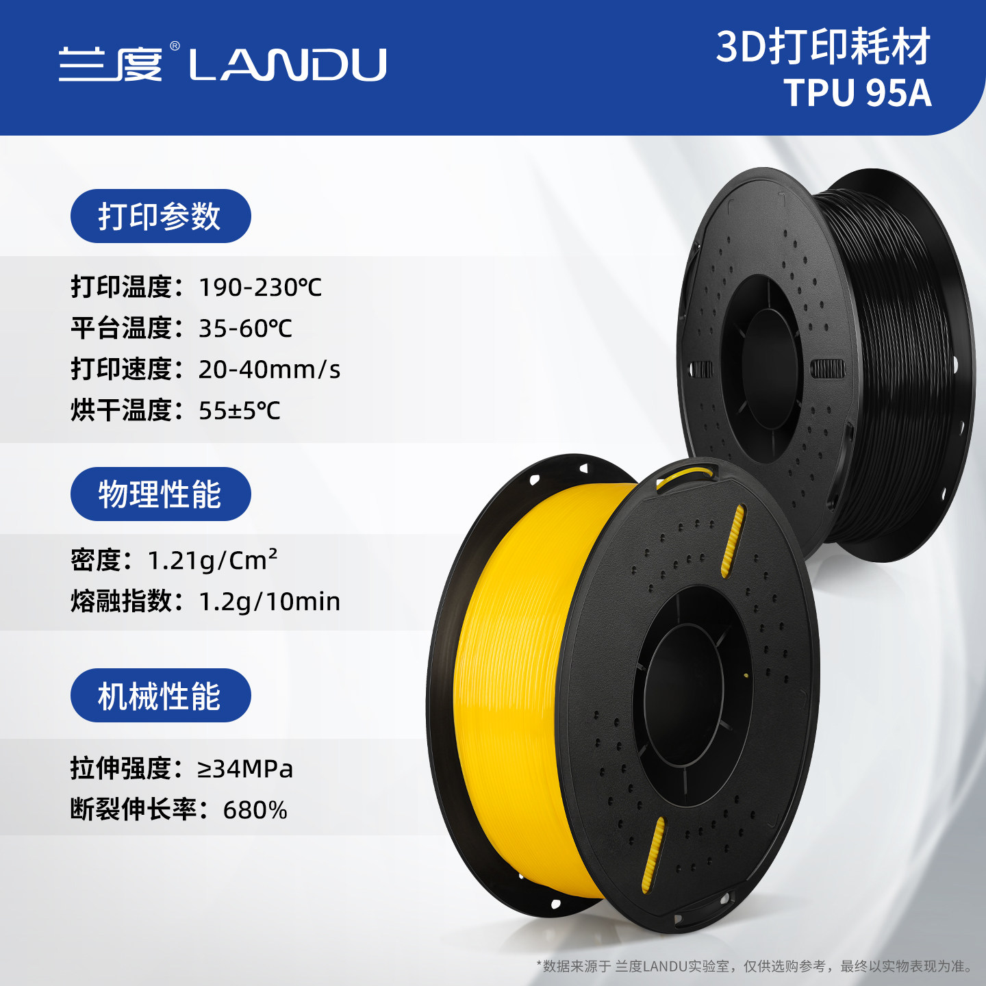 兰度3D打印耗材TPU-95A柔性材料柔韧抗冲击高弹耐磨类柔性TPU耗材适用拓竹创想3D打印机FDM 3D打印机材料1KG