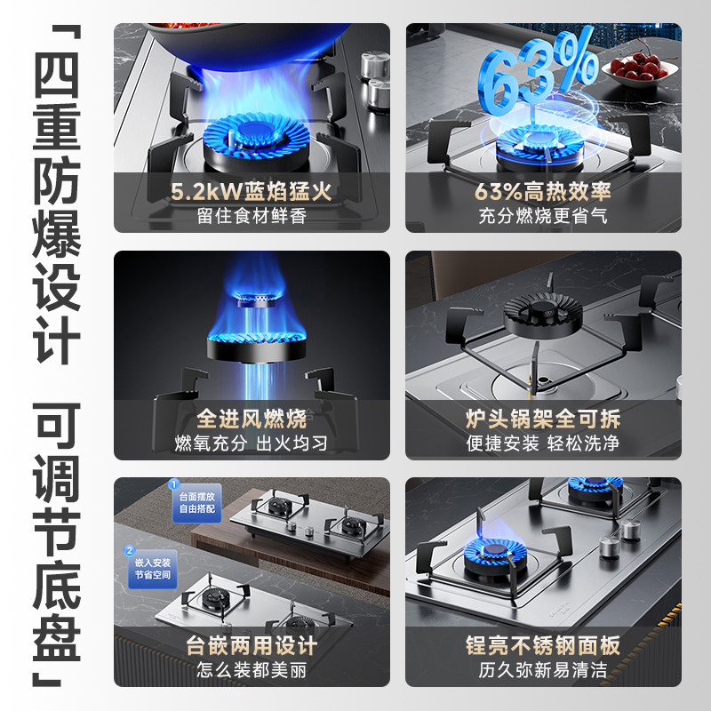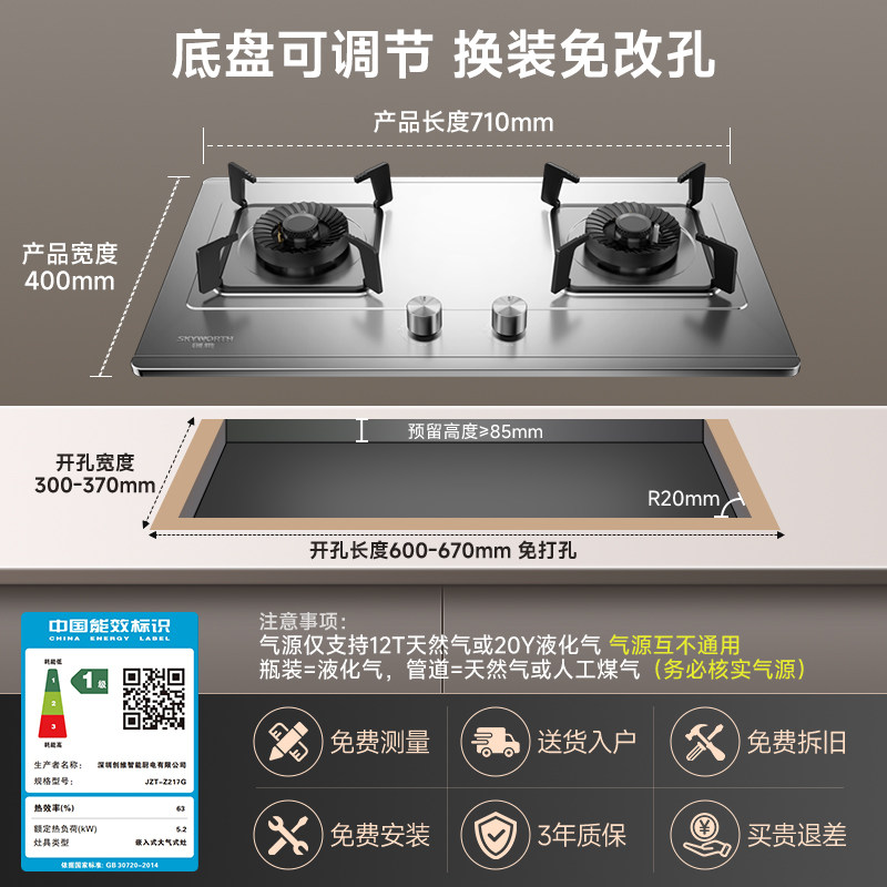 创维Z217G不锈钢燃气灶家用双灶液化气天然气灶嵌入式煤气炉灶台