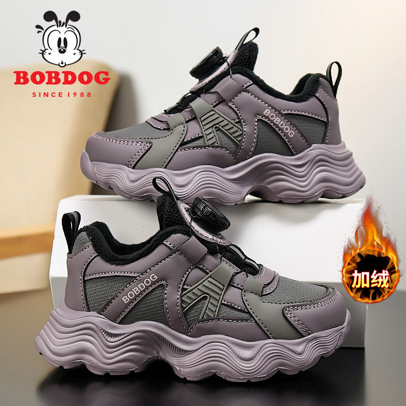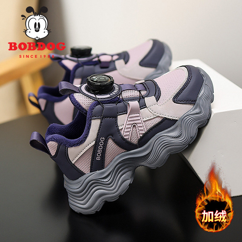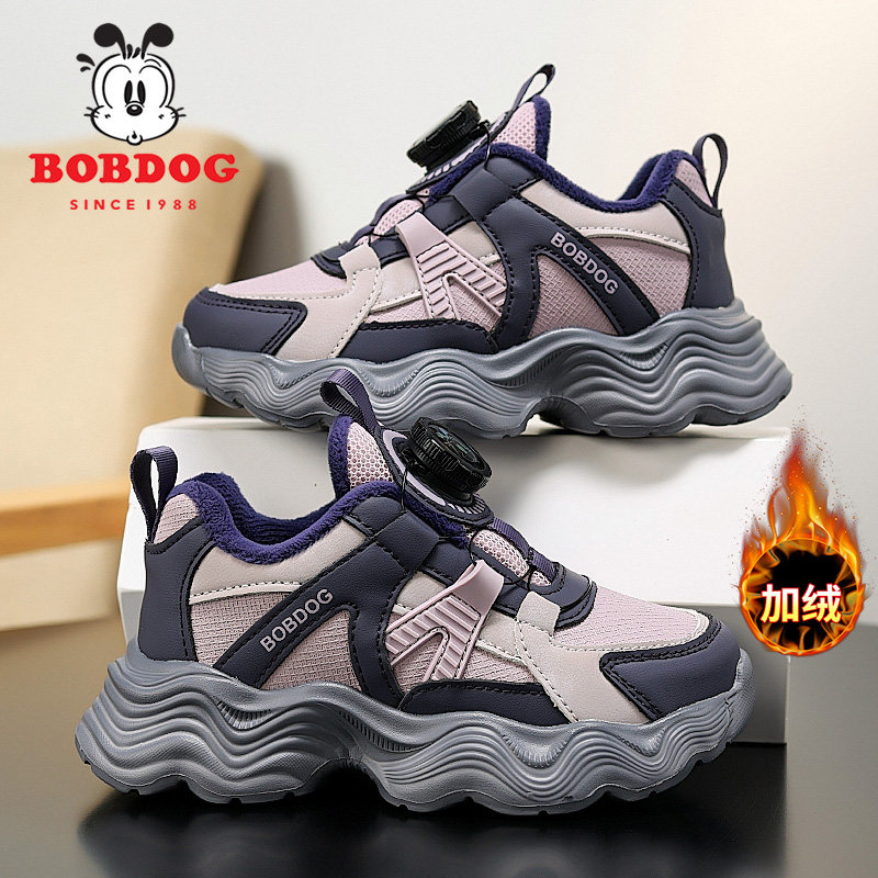 巴布豆童鞋女童二棉鞋冬季2025新款儿童加绒保暖运动老爹鞋中大童