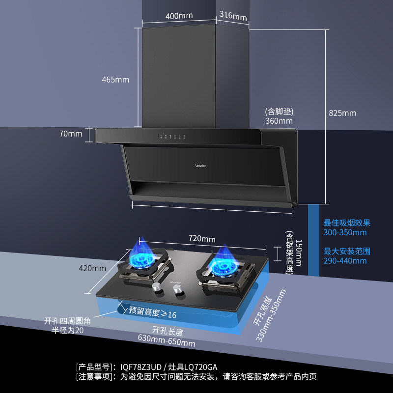【一级净烟】海尔统帅油烟机燃气灶套装F28吸油烟机套餐顶侧双吸