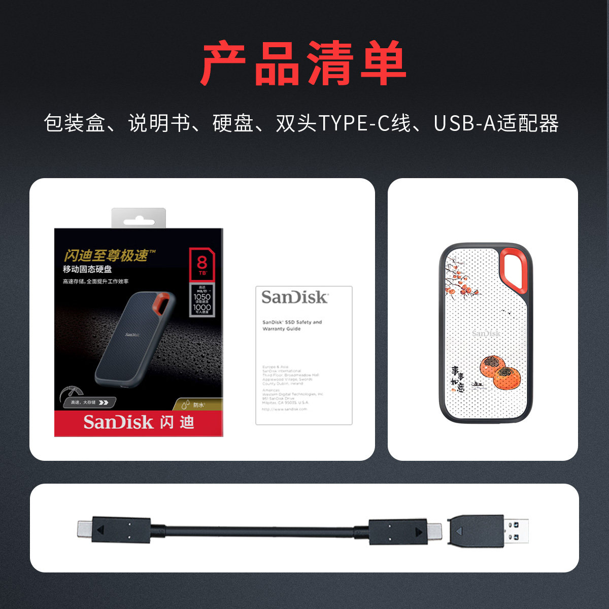 闪迪E61至尊极速 移动固态硬盘8t 4t 2t 1t笔记本电脑手机type c