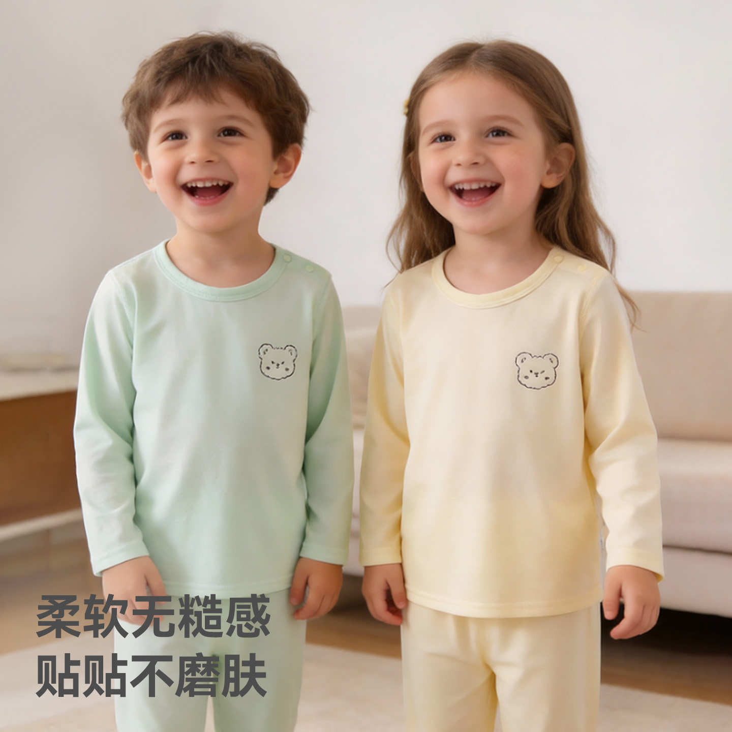 贝肽斯儿童睡衣男女宝宝夏季空调服婴儿纯棉长袖长裤家居服套装S