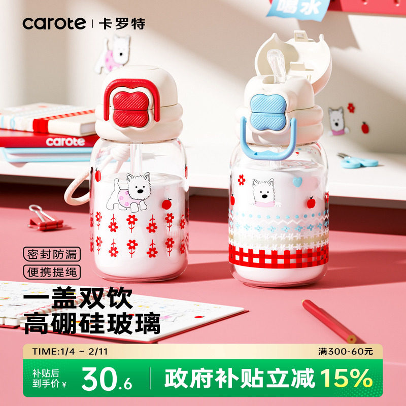 卡罗特玻璃杯吸管杯高硼硅女生高颜值水杯可爱咖啡杯子2026新款