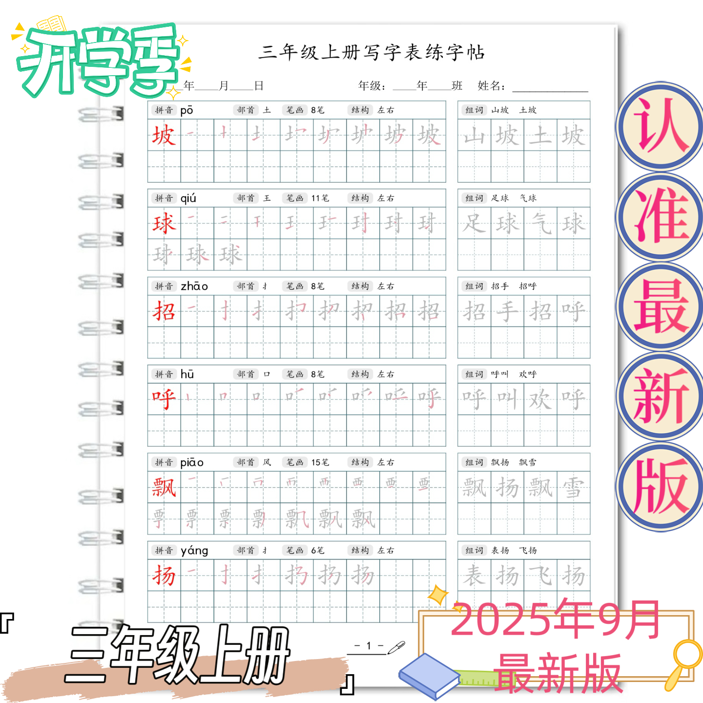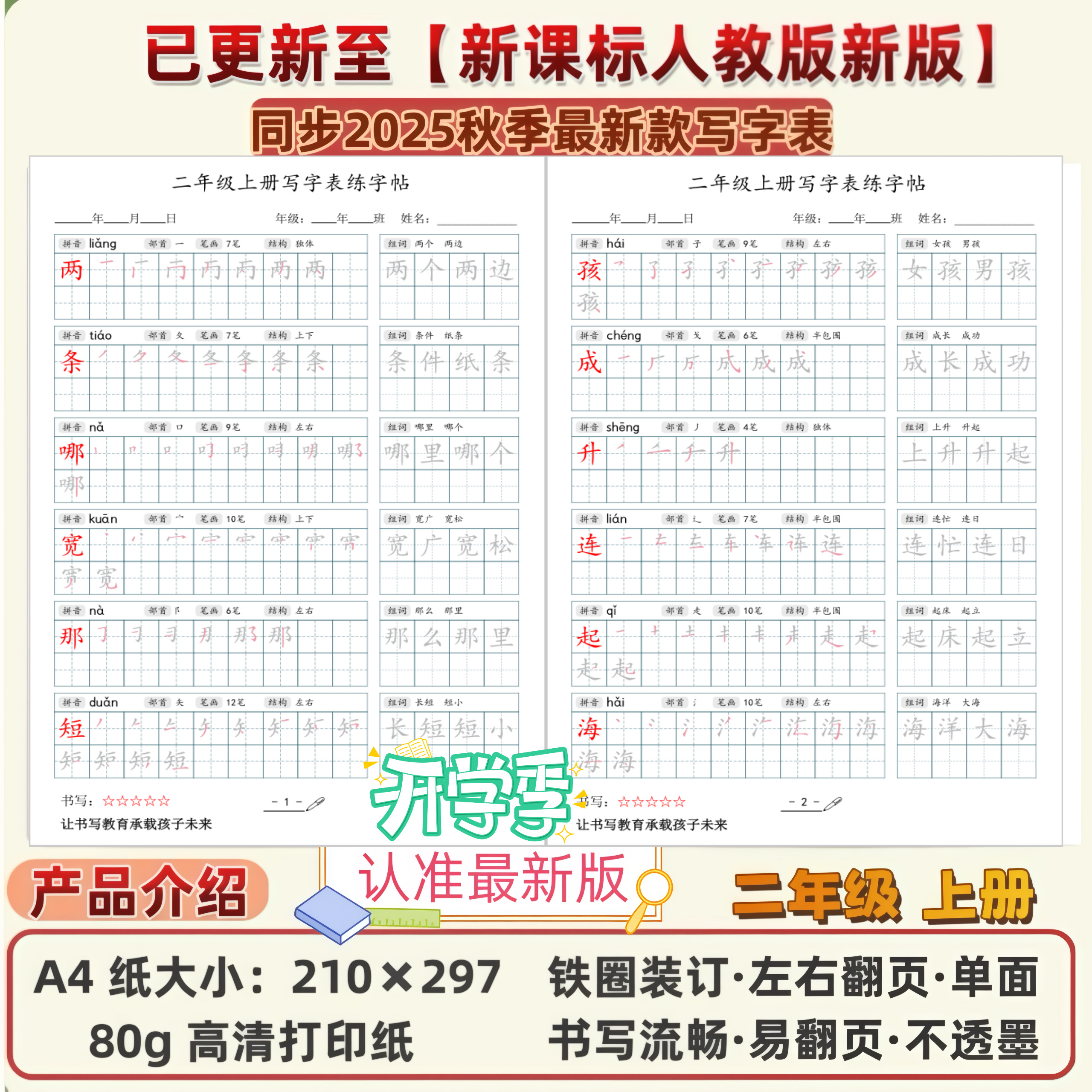 2025新人教版小学语文1-6年级上册下册写字表生字同步练字帖描红