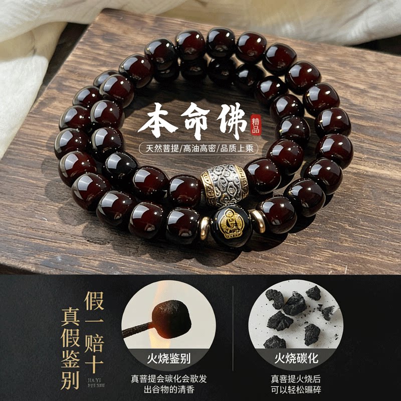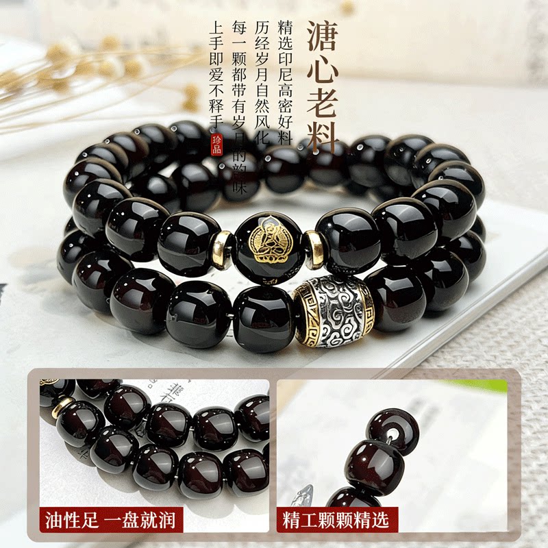 天然玉化溏心老料子双圈菩提根手串正品文玩生肖佛珠男款盘玩手持