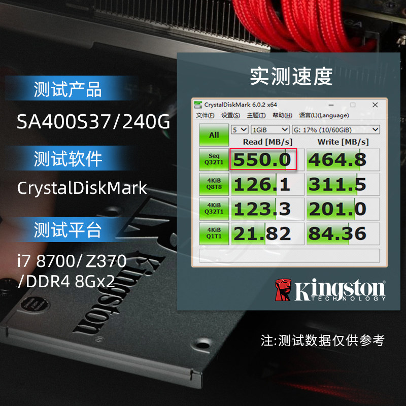 Kingston/金士顿A400固态硬盘240G 480G 960G SATA台式笔记本电脑