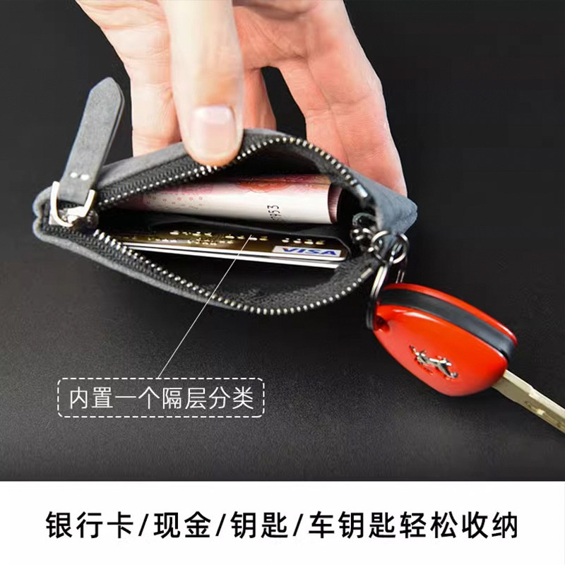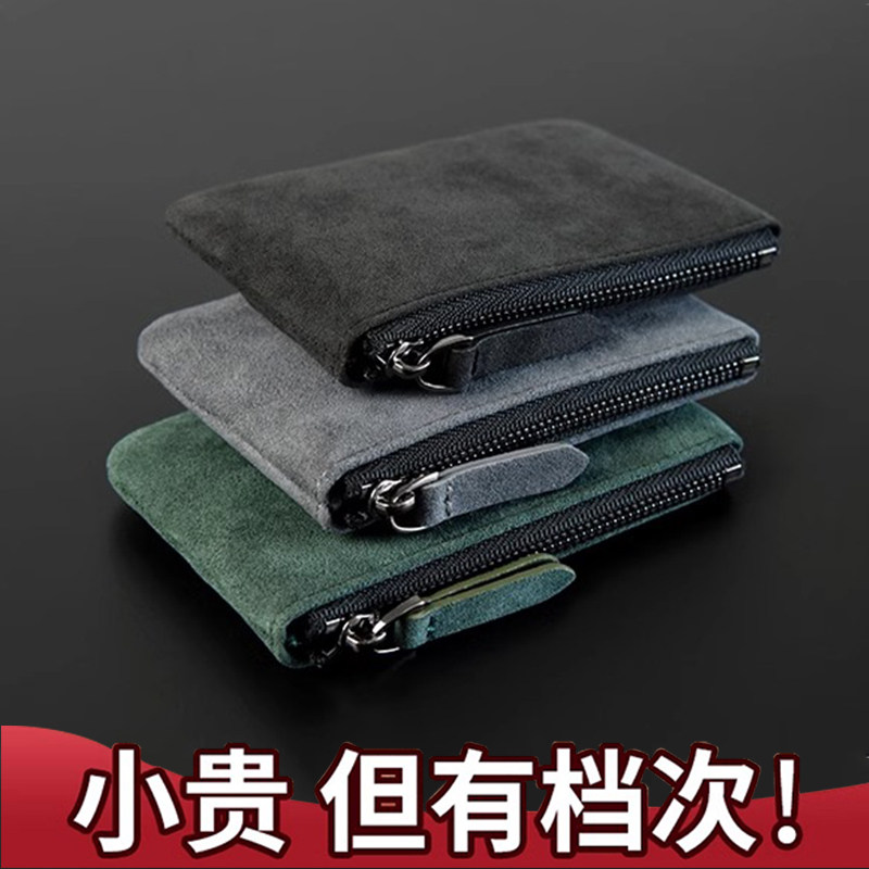 翻毛皮拉链零钱包钥匙包男小钱包迷你硬币手包女多功能收纳包现金
