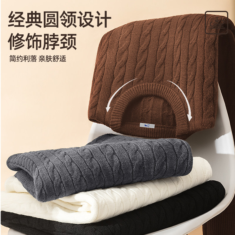 红蜻蜓男士圆领毛衣加绒加厚秋冬新款休闲保暖爸爸冬装针织打底衫