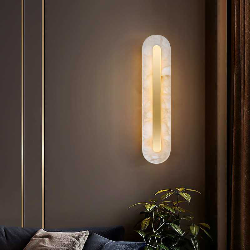 轻奢全铜客厅壁灯后现代创意酒店楼梯过道餐厅灯卧室床头云石壁灯
