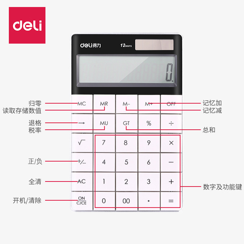 得力计算器1589太阳能时尚多彩商务平板大按键办公财务计算机包邮
