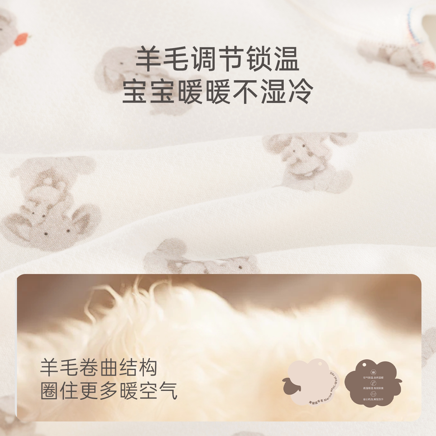 木生棉宝宝羊毛连体衣秋冬季婴儿莫代尔微弹假两件哈衣居家爬爬服